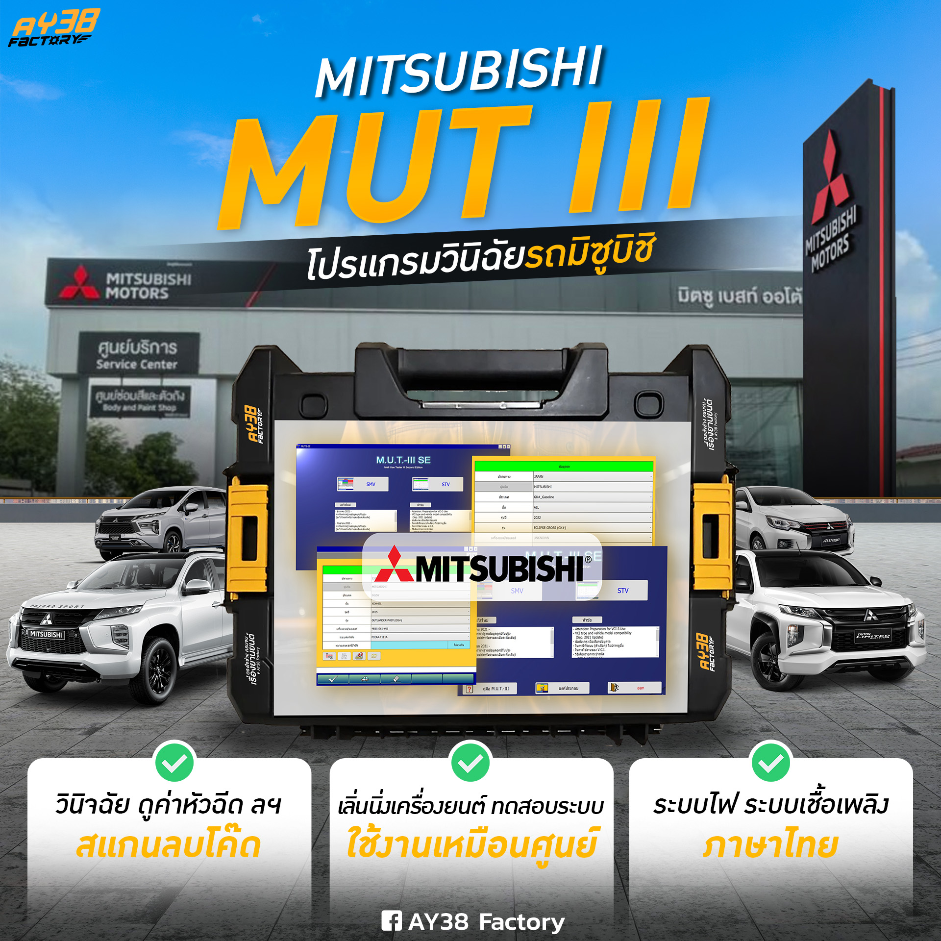 โปรแกรมศูนย์บริการ Mitsubishi MUT-III สำหรับวินิจฉัยปัญหารถ Mitsubishi