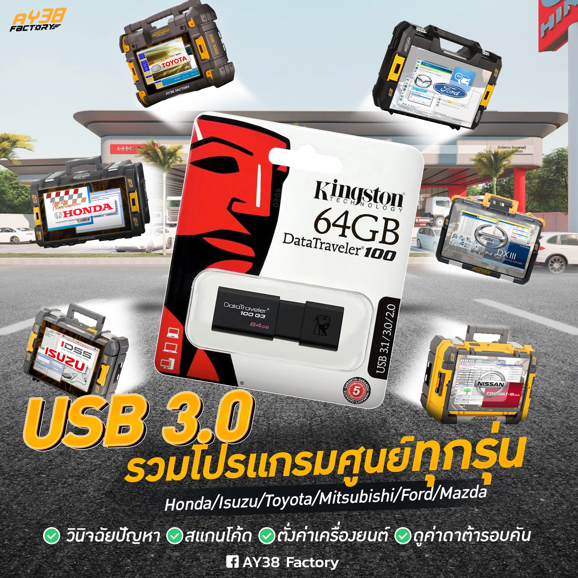 ชุดโปรแกรมวินิจฉัยปัญหารถศูนย์บริการครบ 9 ยี่ห้อ พร้อมใช้งาน